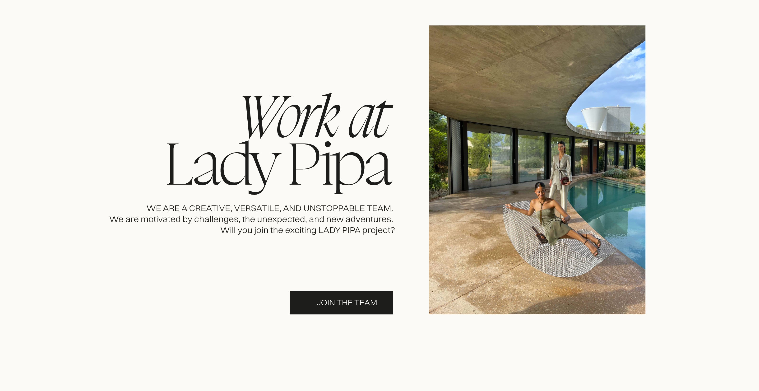 At LADY PIPA, we share the same vision: to grow together in an inclusive, close-knit, and collaborative environment, where each person contributes their unique talent and perspective.
