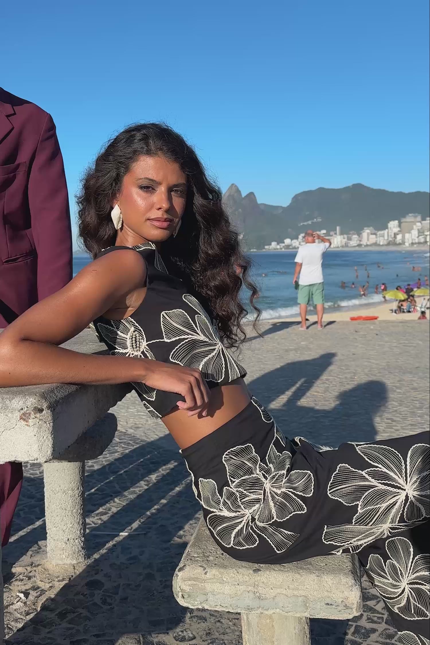 Embroidered cotton crop top. Cap sleeves. Button detail on the back.