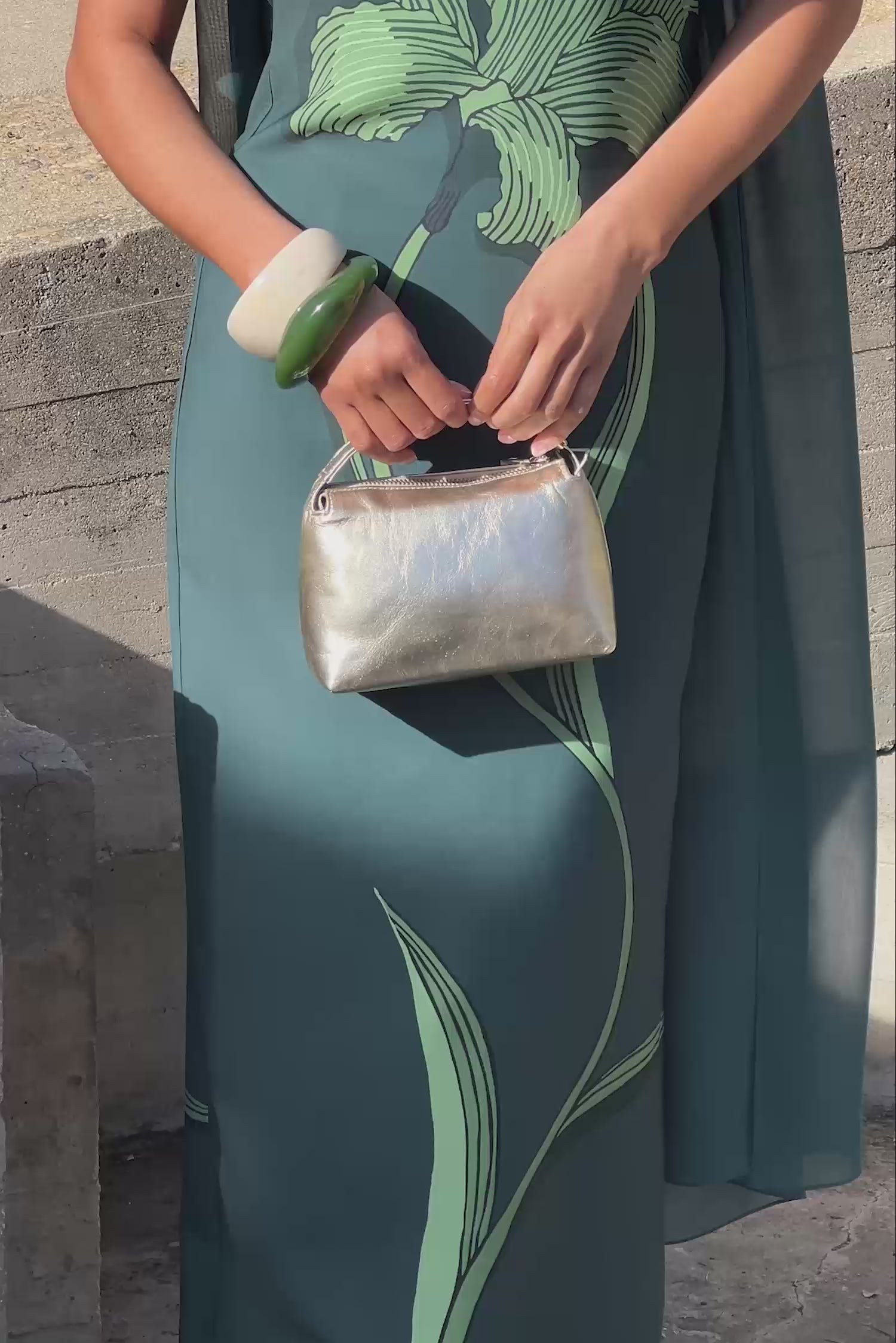 Petit sac rectangulaire avec poignée et fermeture à glissière.