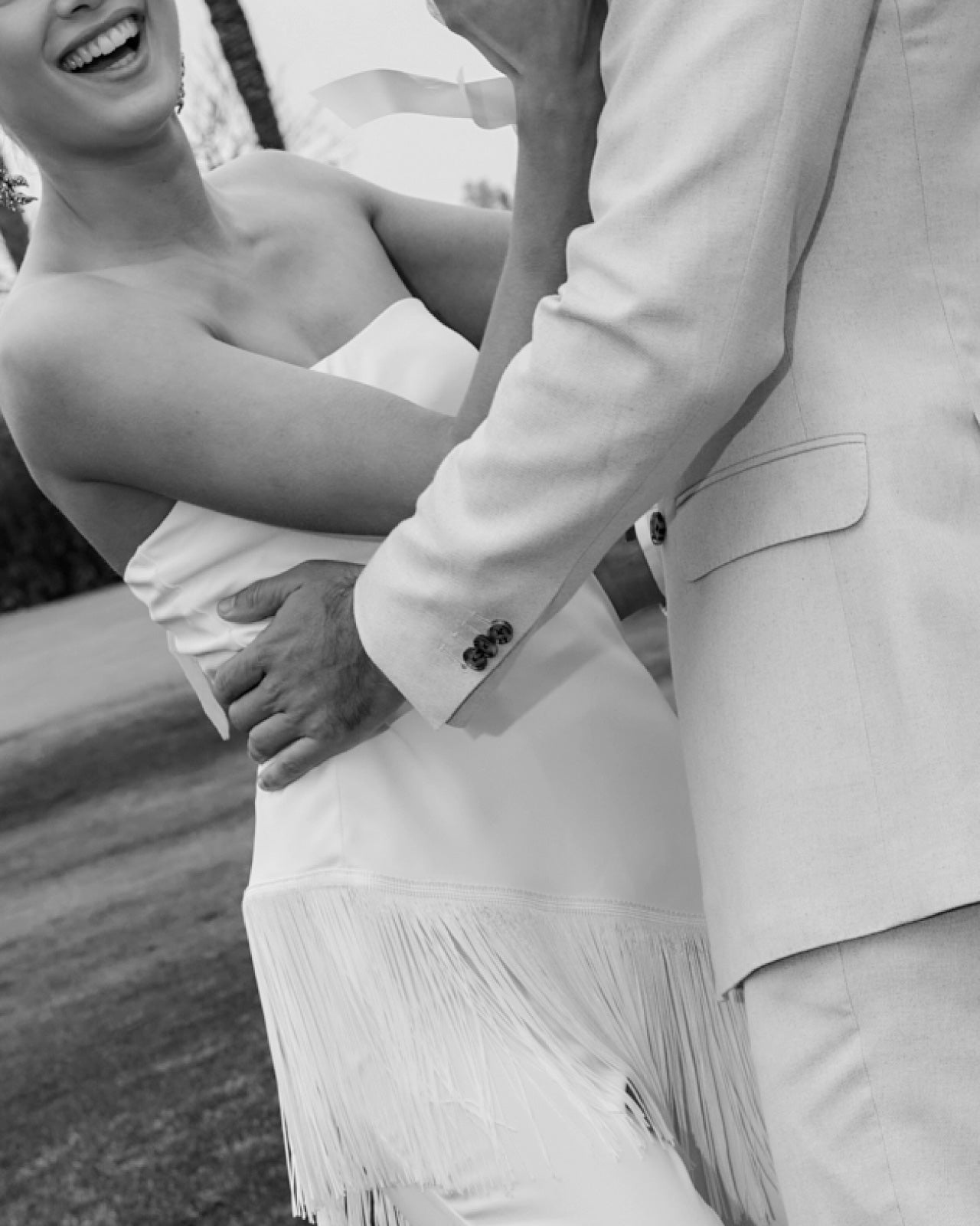 Robe midi coupe asymétrique sur la jupe avec un léger volant pour lui donner du mouvement, dos nu et ouverture sur le devant.