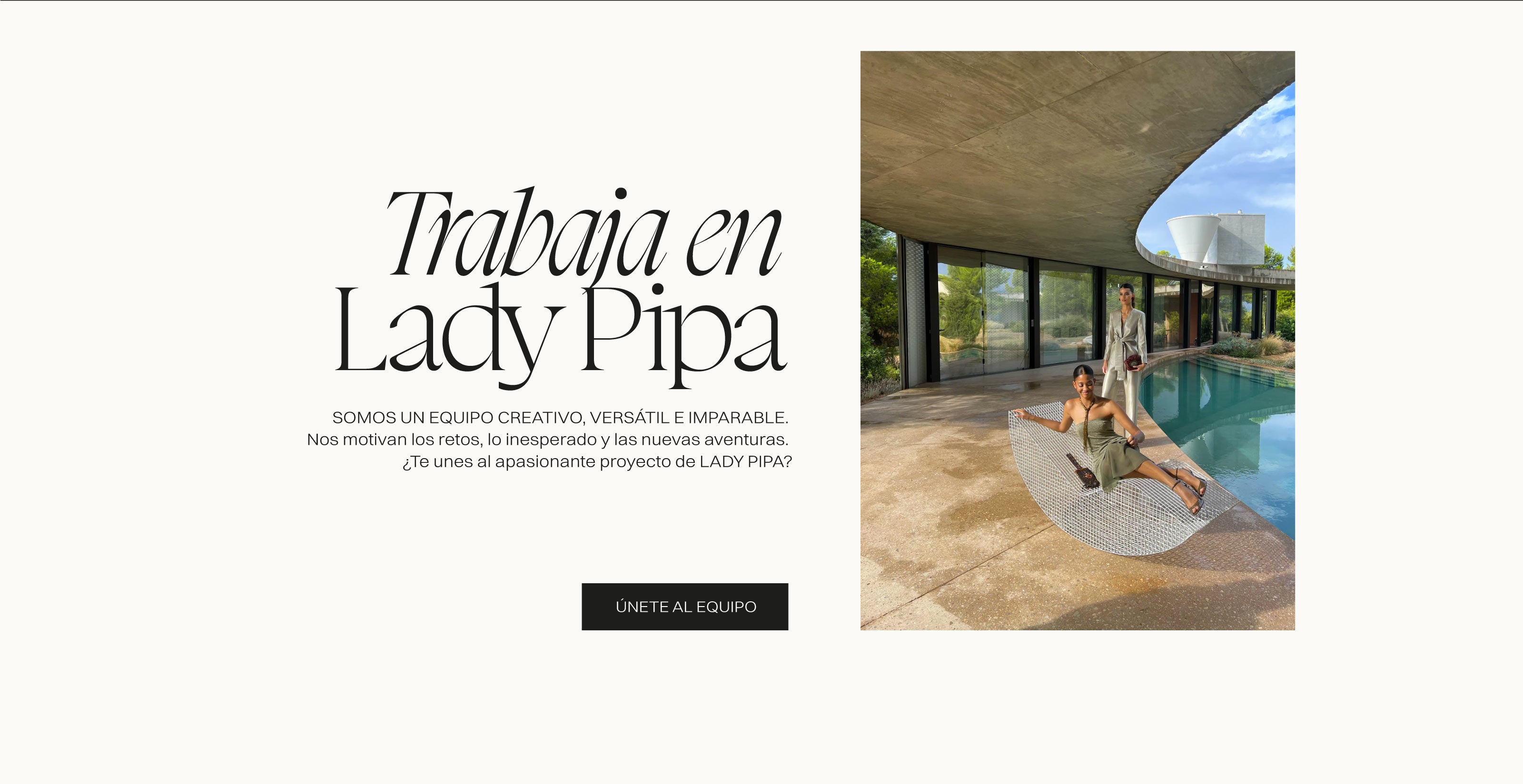 Si quieres descubrir más sobre lo que nos inspira, conocer cómo es trabajar en Lady Pipa y formar parte de este proyecto, te invitamos a explorar nuestras oportunidades. Puede que aquí comience tu próxima gran historia. ✨